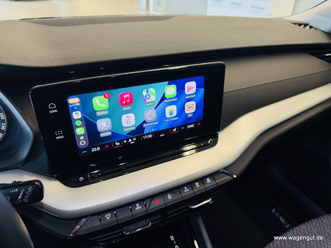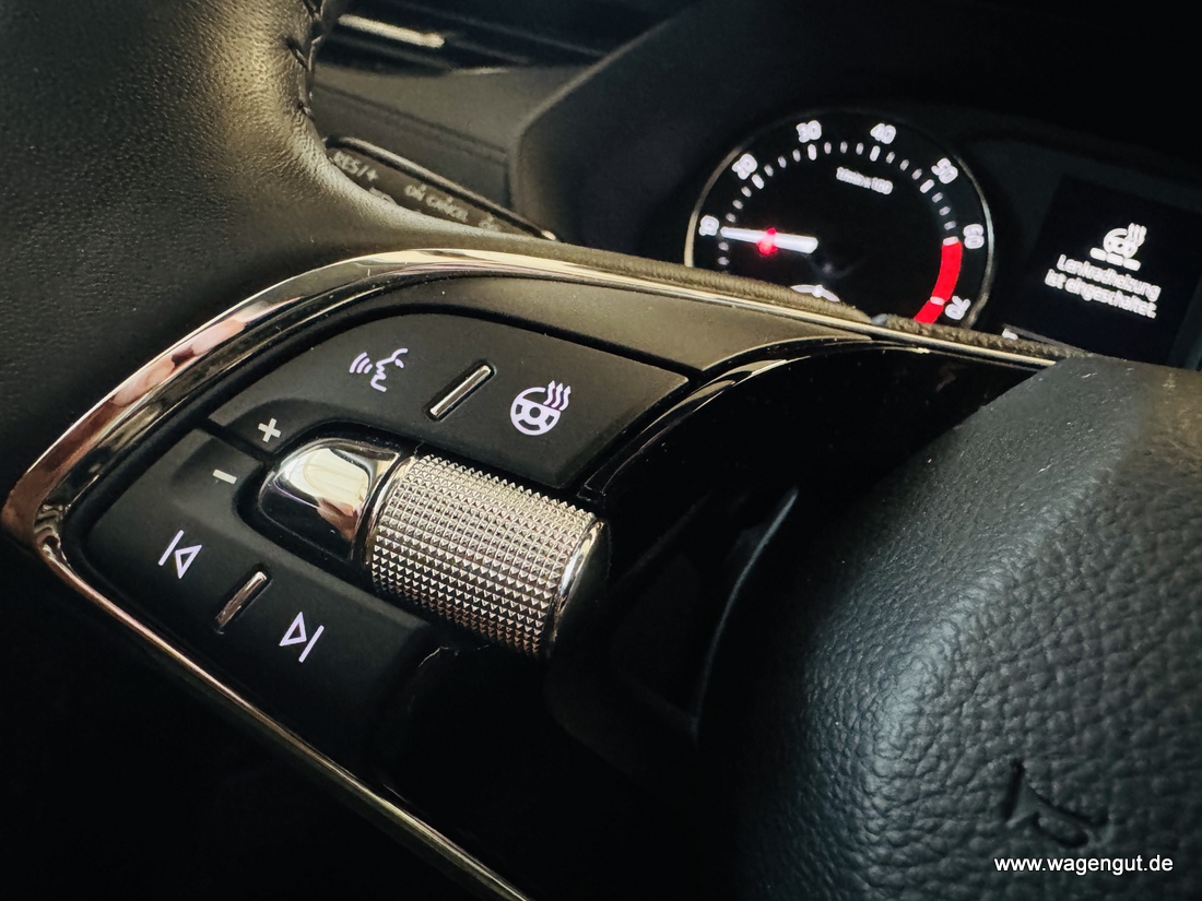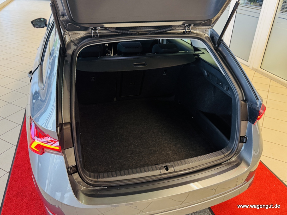 - Im Innenraum erwarten Sie schwarze Stoffsitze, beheizbare Vorder- und Rücksitze, ein beheizbares Lenkrad und Ambientbeleuchtung für angenehme Atmosphäre. Das Infotainmentsystem mit Touchscreen, Navigationssystem, Apple CarPlay und Android Auto sorgt für beste Konnektivität. Praktische Details wie Dachreling und umklappbarer Beifahrersitz erhöhen die Vielseitigkeit dieses Kombis.