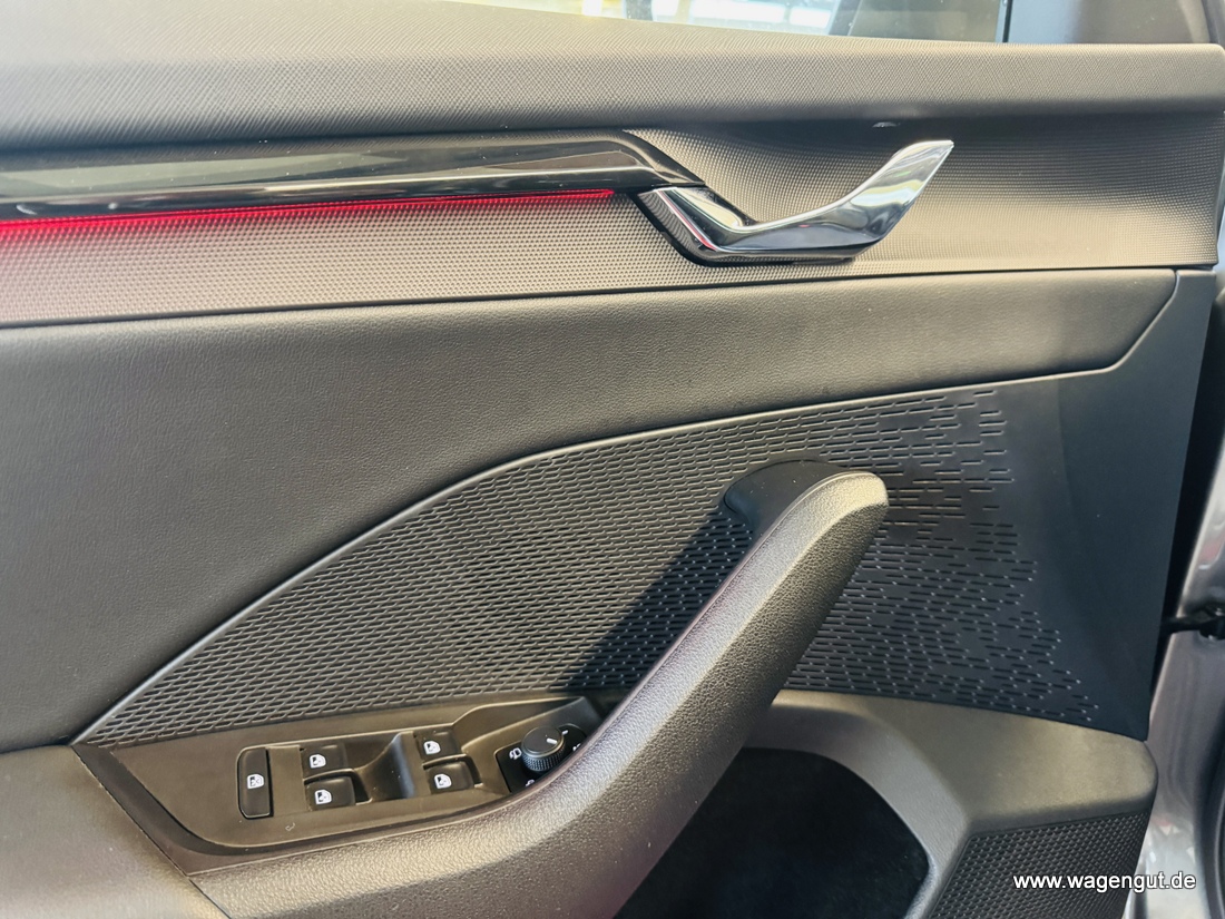 - Ausstattung 8 Lautsprecher, Ablagefach für Regenschirm, Ablagefach mit Cargo-Organizer (Gepäck-/Laderaum), Ablagetasche an Vordersitzlehnen, Airbag Beifahrerseite abschaltbar, Airbag Fahrer-/Beifahrerseite, Akustikglas Türscheiben vorn, Ambiente-Beleuchtung LED, Anhängerkupplung Vorbereitung, Antriebs-Schlupfregelung (ASR), Audiosystem Bolero mit Touchscreen, Außenspiegel elektr. anklappbar, Außenspiegel elektr. verstell- und heizbar, Außenspiegel und Türgriffe außen in Wagenfarbe, Bordcomputer, Bremsassistent, Bremsenergierückgewinnung, Brillenfach, Dachhimmel grau, Dachreling, Doppeltonfanfare, Einparkhilfe vorn und hinten, Elektron. Querdifferentialsperre (XDS), Fahrassistenz-System: Abbiegebremsfunktion und Ausweichunterstützung, Fahrassistenz-System: Auffahrwarnsystem mit City-Notbremsfunktion (Frontradar-Assistent), Fahrassistenz-System: Berganfahr-Assistent (Hill-Holder), Fahrassistenz-System: Fernlichtassistent, Fahrassistenz-System: Multikollisionsbremse (Multi Collision Brake), Fahrassistenz-System: Spurhalteassistent (Lane Assist), Fensterheber elektrisch vorn + hinten, Freisprechanlage Telefon mit Bluetooth, Frontkamera, Fußraumbeleuchtung vorn und hinten, Gepäckraumabdeckung / Rollo, Geschwindigkeits-Regelanlage (Tempomat) inkl. Geschwindigkeits-Begrenzeranlage, Heckleuchten LED (Kristallglas-Optik), Heckscheibenwischer, Innenausstattung: Dekoreinlagen Silber mit Ambiente-Beleuchtung, Innenspiegel mit Abblendautomatik, Isofix-Aufnahmen für Kindersitz an Beifahrersitz, Isofix-Aufnahmen für Kindersitz an Rücksitz, Karosserie: 5-türig, Kennzeichenbeleuchtung LED, Klimaanlage Climatronic 3-Zonen, Knieairbag Fahrerseite, Kopf-Airbag-System, Lehnenentriegelung der Rücksitzlehne im Kofferraum, Lendenwirbelstütze Sitz vorn links, Lendenwirbelstütze Sitz vorn rechts, Lenkrad (Leder) mit Multifunktion, Lenkrad heizbar, Lenksäule (Lenkrad) verstellbar (vertikal / axial), Licht- und Regensensor, Lichtassistent (Coming Home, Leaving Home), LM-Felgen, Mittelarmlehne hinten, Motor 1,0 Ltr. - 81 kW TSI, Nebelscheinwerfer LED mit Abbiegelicht, Notrufsystem, Otto-Partikelfilter (OPF), Parkbremse elektronisch, Radioempfang digital (DAB+), Reifen-Reparaturkit, Reifendruck-Kontrollsystem, Rückfahrkamera, Rücksitzlehne geteilt/klappbar, Schadstoffarm nach Abgasnorm Euro 6d, Scheibenwaschdüsen heizbar, Scheinwerfer LED, Seitenairbag vorn, Service-System: Remote Services, Sitz vorn links höhenverstellbar, Sitz vorn rechts höhenverstellbar, Sitzbezug / Polsterung: Stoff Ambition Schwarz, Sitze vorn ErgoComfort, manuell verstellbar (inkl. Massagefunktion, ausziehbarer Beinauflage), Sitzheizung vorn, SmartLink (Apple CarPlay und Android Auto), Sonnenblenden mit Spiegel (LED-Beleuchtung), Sprachsteuerung für Infotainment-System, Start/Stop-Anlage, Steckdose (12V-Anschluß) im Koffer-/Laderaum, Steckdose 230V inkl. USB-Anschlüsse Typ C, 2 x für 2.Sitzreihe und 1 x im Innenspiegel (nur Ladefunktion), Stoßfänger vorn mit Chrom-Applikationen, USB-Schnittstelle vorn (2-fach, Typ C), Verglasung getönt, Verzurrösen Koffer-/Laderaum, Warnanlage für Sicherheitsgurte hinten, Warnanlage für Sicherheitsgurte, Fahrer-/Beifahrerseite, Wireless SmartLink, Zentralverriegelung / Startanlage Kessy-Go