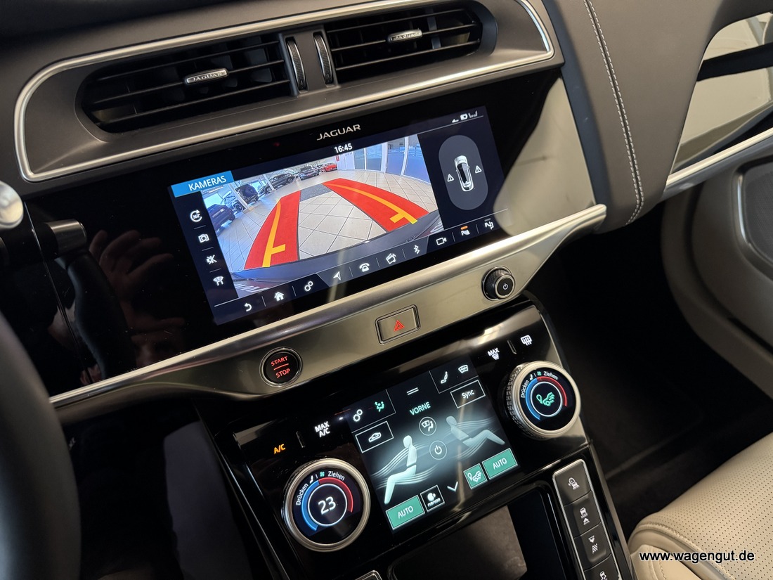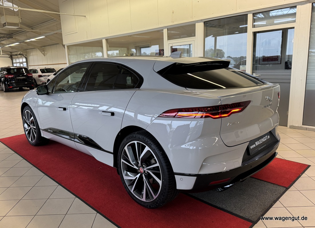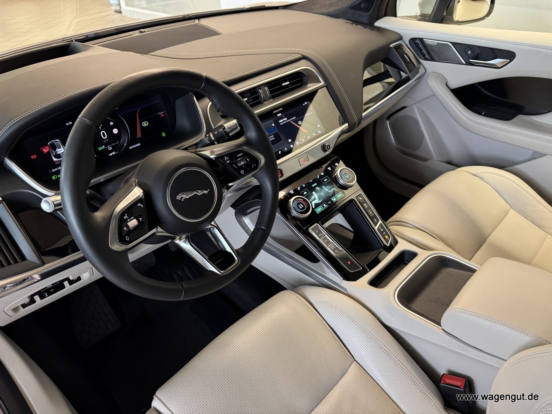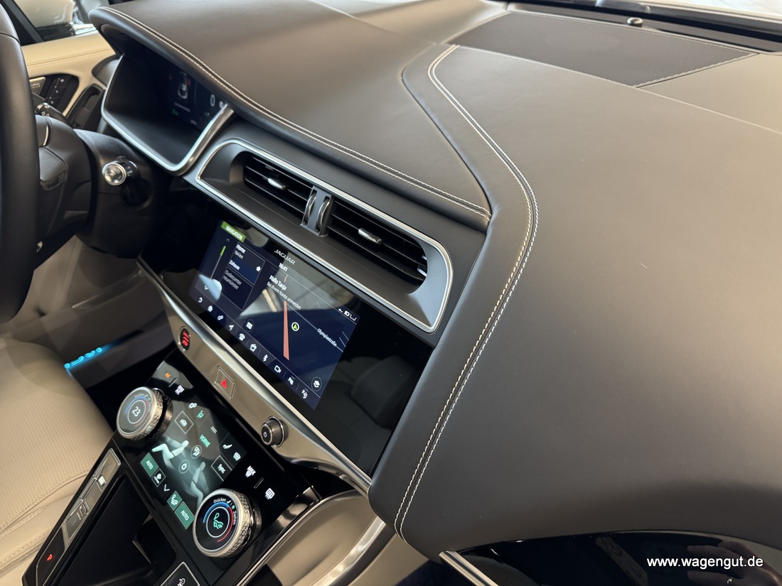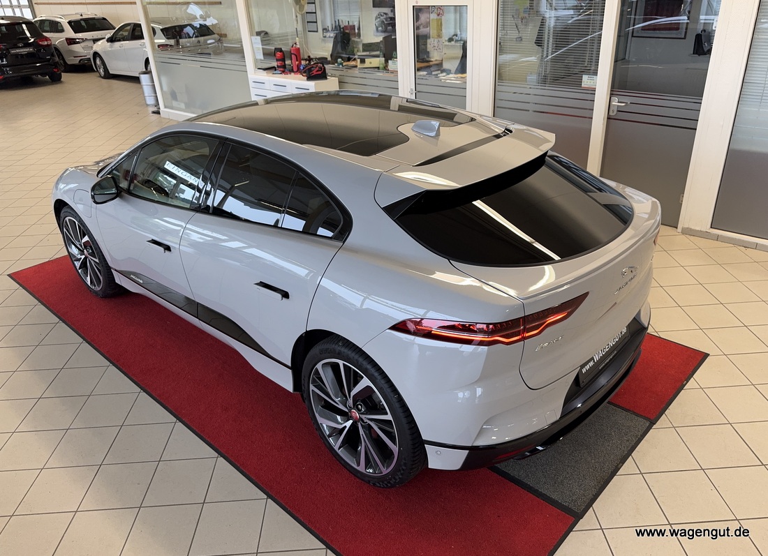 - Airbag Fahrer-/Beifahrerseite, Antriebsart: Allradantrieb, Audio Interface (Universal-Schnittstelle für iPod / AUX / USB / MP3), Audiosystem Meridian 825 Watt Surround-Klangsystem (Radio/CD-Wechsler, MP3), Außenspiegel elektr. verstell-, heiz- und anklappbar, mit Abblendautomatik, Memoryfunktion und Umfeldleuchte, Außenspiegel Wagenfarbe, Bluetooth-Schnittstelle, Bremsenergierückgewinnung, Brillenfach in Dachhimmel / Dachkonsole integriert, Diebstahlschutz-System satellitengestützt (InControl Secure), Einschaltautomatik für Fahrlicht / Lichtsensor, Elektromotor 294 kW (cont. 172 kW, Dual-Elektromotor), Fahrassistenz-Paket 2, Fahrassistenz-System: Adaptive Geschwindigkeitsregelanlage mit Verkehrszeichenerkennung, Fahrassistenz-System: Antriebsmomentkontrolle (Torque Vectoring), Fahrassistenz-System: Aufmerksamkeits-Assistent, Fahrassistenz-System: Berganfahrhilfe (Hill-Holder), Fahrassistenz-System: Spurhalteassistent, Fahrassistenz-System: Spurverlassenswarnung, Fahrassistenz-System: Verkehrszeichenerkennung, Fahrassistenz-System: Warnsystem Totwinkel bei Türöffnung hinten, Fensterheber elektrisch vorn + hinten, Frontscheibe Verbundglas, Frontscheibe wärmedämmend, Geschwindigkeits-Regelanlage geländeabhängig (All Surface Progress Control, ASPC), Getriebe für Elektrofahrzeug, Getränkehalter hinten, Getränkehalter vorn, Heckklappenbetätigung elektrisch (mit Gestiksteuerung), Heckleuchten LED, Heckscheibe heizbar, Heckschürze, Heckspoiler, InControl Apps, InControl Apps Mobile Online Dienste, InControl Remote Premium (Onlinedienste / Apps), InControl-Connect-Paket Pro, Infotainment-System: Pivi Pro, Innenausstattung: Dekoreinlagen Gloss Black, Innenspiegel mit Abblendautomatik, Instrumentenanzeige TFT-Infodisplay HD, JaguarVoice Sprachsteuerung, Karosserie: 5-türig, Kindersicherung elektrisch, Kopf-Airbag-System (Windowbag), Ladekabel mit Typ 2-Stecker (Mode 3), Ladevorrichtung On-Board-Lader, Lenkrad (Sport/Leder), Leseleuchten im Fond, Leuchtweitenregelung automatisch, Lichtassistent (Coming Home, Leaving Home), Make-up-Spiegel im Fond beleuchtet, Matrix-LED-Scheinwerfer mit LED-Signatur, Mittelarmlehne hinten, Nebelschlussleuchte integriert, Nichtraucher-Paket, Park-Paket (Einparkhilfe), Parkbremse elektronisch (EPB), Radstand 2990 mm, Reifen-Reparaturset, Reifendruck-Kontrollsystem, Rücksitzlehne geteilt/klappbar, Seitenairbag vorn, Sitze vorn elektr. verstellbar (18-Wege, mit Memory) inkl. Klimatisierung und Sitzheizung vorn und hinten, Smog-Sensor / Luftgütesensor, Sportsitze Leder Windsor, Standheizung mit Fernbedienung und Zeitschaltuhr (Timer), Taschenhaken im Gepäckraum, Verzurrösen Koffer-/Laderaum, Warnanlage für Sicherheitsgurte