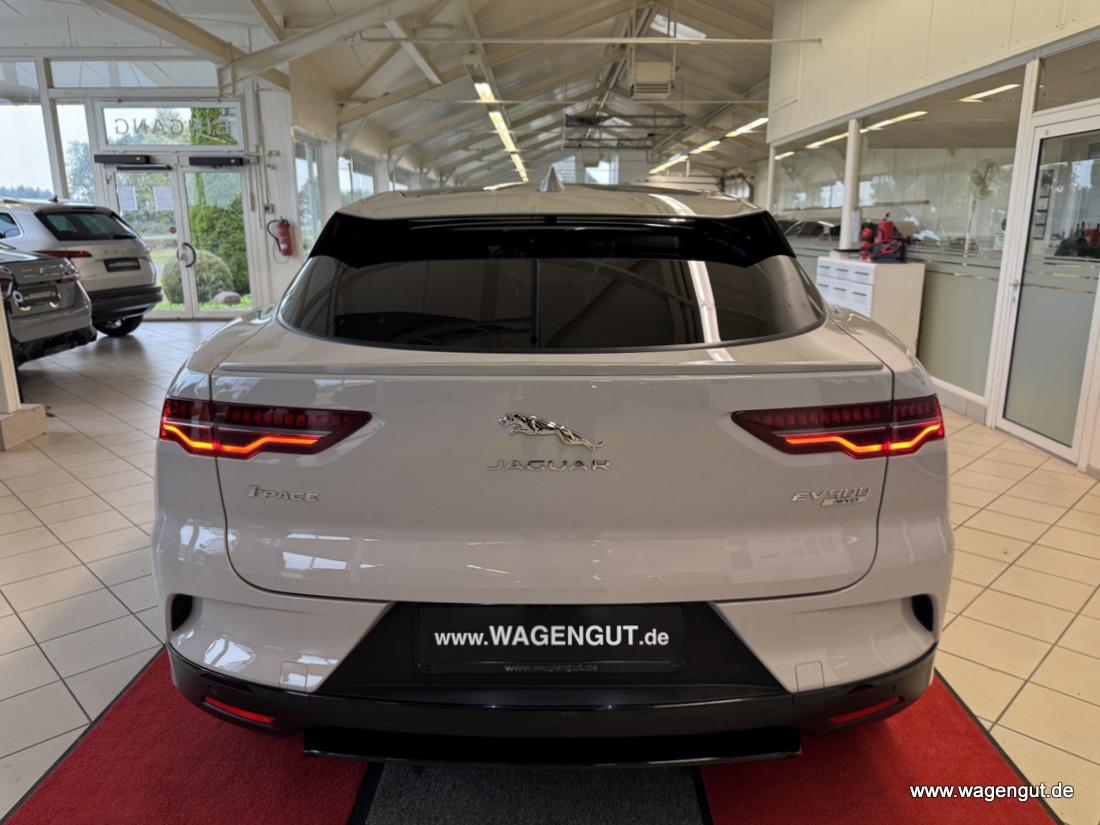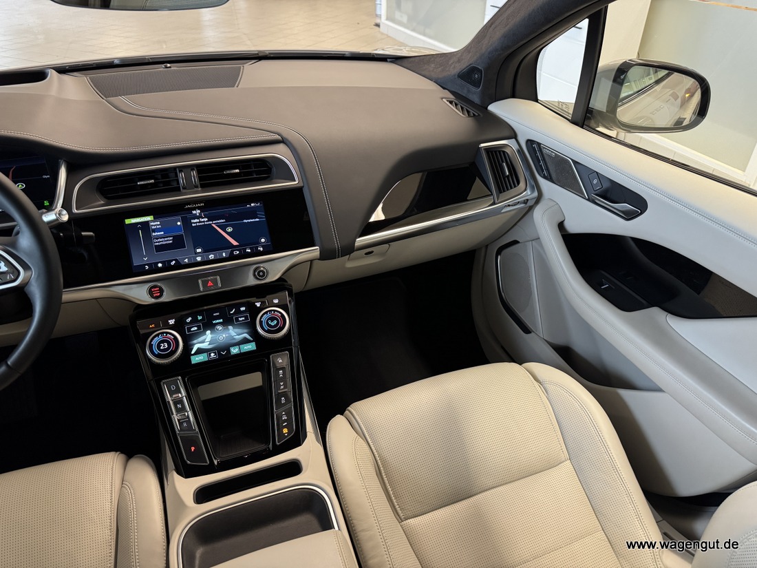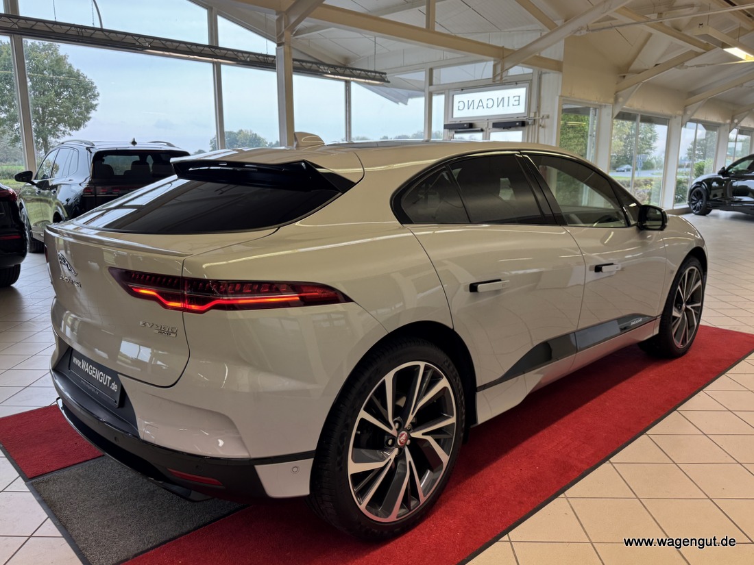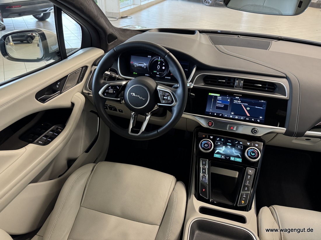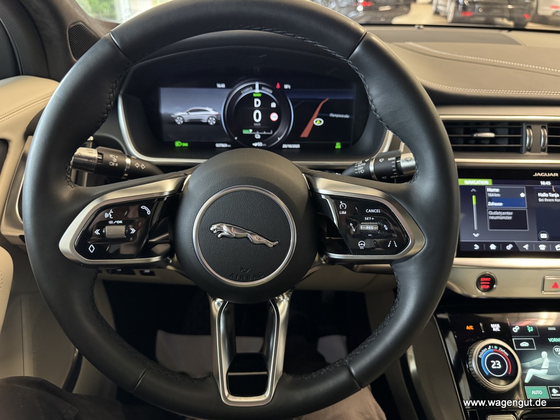 - Airbag Fahrer-/Beifahrerseite, Antriebsart: Allradantrieb, Audio Interface (Universal-Schnittstelle für iPod / AUX / USB / MP3), Audiosystem Meridian 825 Watt Surround-Klangsystem (Radio/CD-Wechsler, MP3), Außenspiegel elektr. verstell-, heiz- und anklappbar, mit Abblendautomatik, Memoryfunktion und Umfeldleuchte, Außenspiegel Wagenfarbe, Bluetooth-Schnittstelle, Bremsenergierückgewinnung, Brillenfach in Dachhimmel / Dachkonsole integriert, Diebstahlschutz-System satellitengestützt (InControl Secure), Einschaltautomatik für Fahrlicht / Lichtsensor, Elektromotor 294 kW (cont. 172 kW, Dual-Elektromotor), Fahrassistenz-Paket 2, Fahrassistenz-System: Adaptive Geschwindigkeitsregelanlage mit Verkehrszeichenerkennung, Fahrassistenz-System: Antriebsmomentkontrolle (Torque Vectoring), Fahrassistenz-System: Aufmerksamkeits-Assistent, Fahrassistenz-System: Berganfahrhilfe (Hill-Holder), Fahrassistenz-System: Spurhalteassistent, Fahrassistenz-System: Spurverlassenswarnung, Fahrassistenz-System: Verkehrszeichenerkennung, Fahrassistenz-System: Warnsystem Totwinkel bei Türöffnung hinten, Fensterheber elektrisch vorn + hinten, Frontscheibe Verbundglas, Frontscheibe wärmedämmend, Geschwindigkeits-Regelanlage geländeabhängig (All Surface Progress Control, ASPC), Getriebe für Elektrofahrzeug, Getränkehalter hinten, Getränkehalter vorn, Heckklappenbetätigung elektrisch (mit Gestiksteuerung), Heckleuchten LED, Heckscheibe heizbar, Heckschürze, Heckspoiler, InControl Apps, InControl Apps Mobile Online Dienste, InControl Remote Premium (Onlinedienste / Apps), InControl-Connect-Paket Pro, Infotainment-System: Pivi Pro, Innenausstattung: Dekoreinlagen Gloss Black, Innenspiegel mit Abblendautomatik, Instrumentenanzeige TFT-Infodisplay HD, JaguarVoice Sprachsteuerung, Karosserie: 5-türig, Kindersicherung elektrisch, Kopf-Airbag-System (Windowbag), Ladekabel mit Typ 2-Stecker (Mode 3), Ladevorrichtung On-Board-Lader, Lenkrad (Sport/Leder), Leseleuchten im Fond, Leuchtweitenregelung automatisch, Lichtassistent (Coming Home, Leaving Home), Make-up-Spiegel im Fond beleuchtet, Matrix-LED-Scheinwerfer mit LED-Signatur, Mittelarmlehne hinten, Nebelschlussleuchte integriert, Nichtraucher-Paket, Park-Paket (Einparkhilfe), Parkbremse elektronisch (EPB), Radstand 2990 mm, Reifen-Reparaturset, Reifendruck-Kontrollsystem, Rücksitzlehne geteilt/klappbar, Seitenairbag vorn, Sitze vorn elektr. verstellbar (18-Wege, mit Memory) inkl. Klimatisierung und Sitzheizung vorn und hinten, Smog-Sensor / Luftgütesensor, Sportsitze Leder Windsor, Standheizung mit Fernbedienung und Zeitschaltuhr (Timer), Taschenhaken im Gepäckraum, Verzurrösen Koffer-/Laderaum, Warnanlage für Sicherheitsgurte