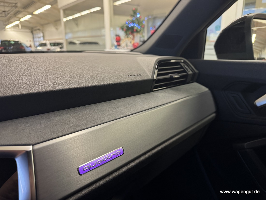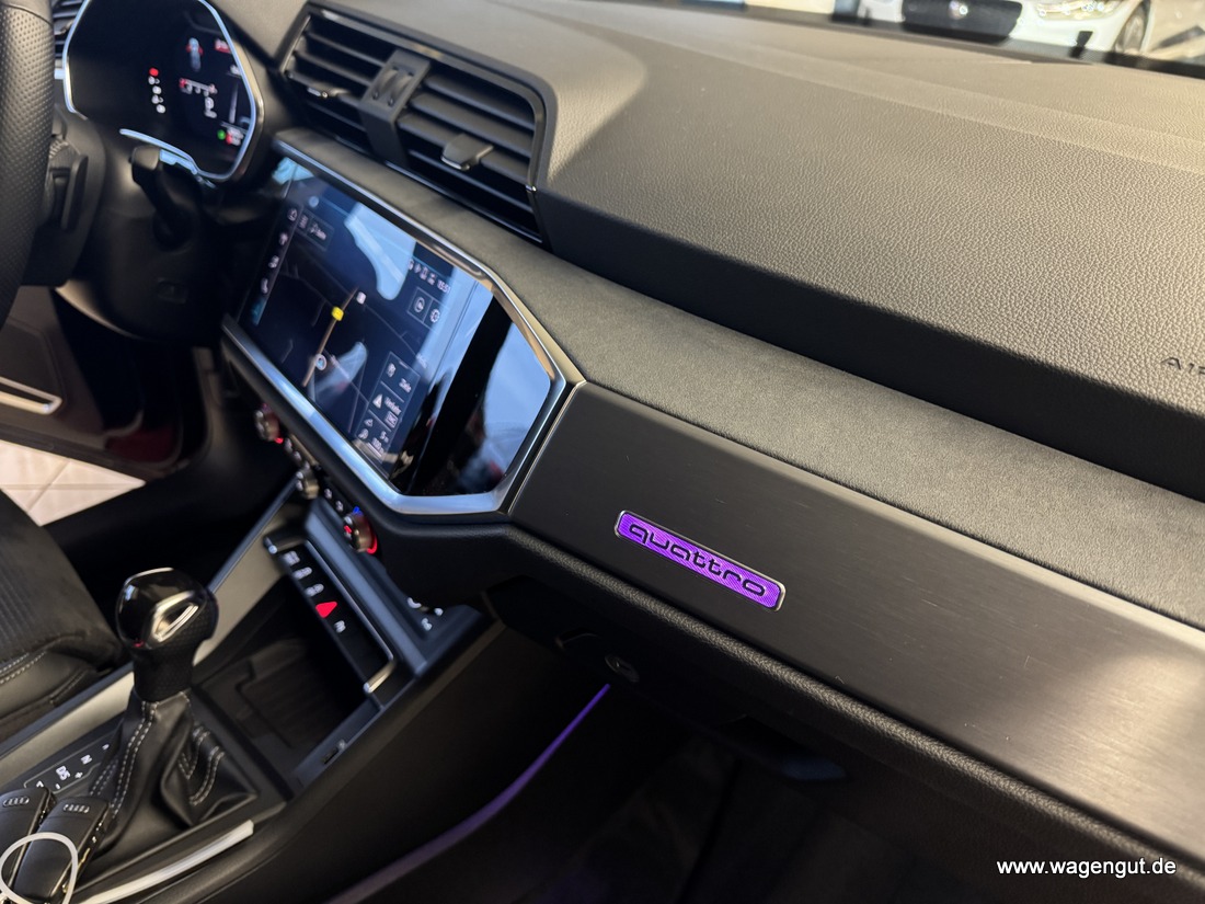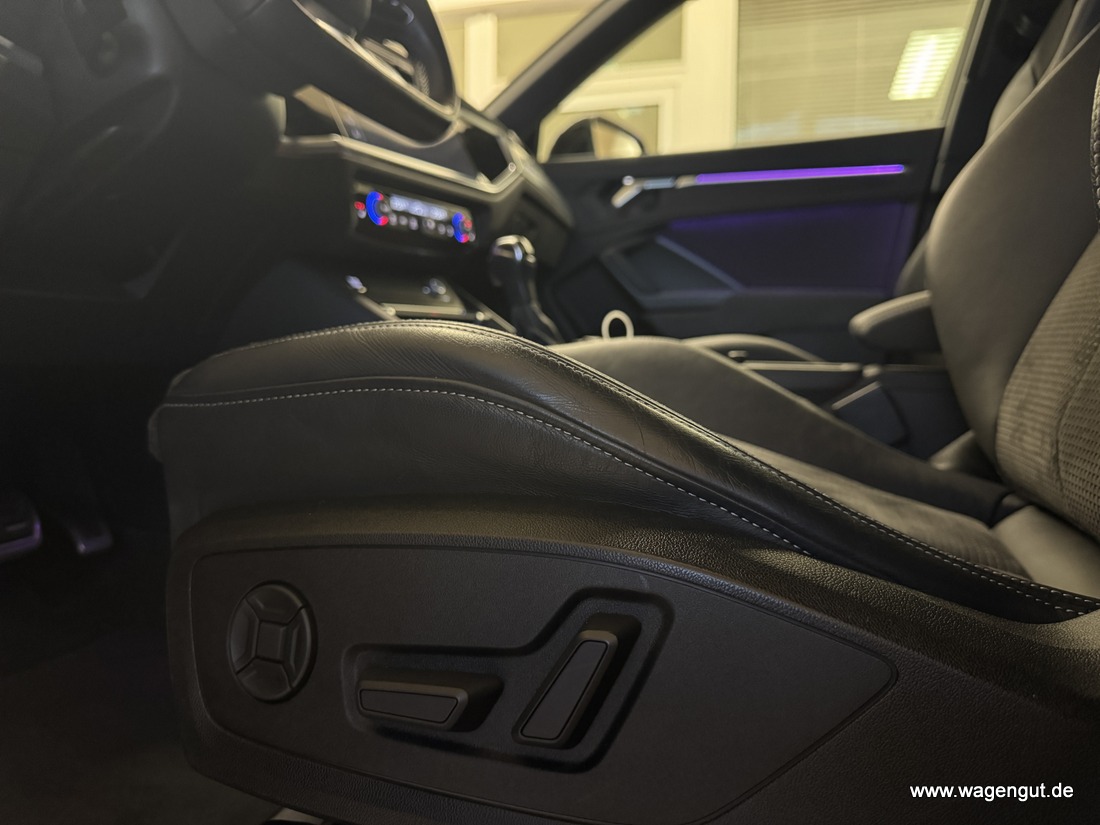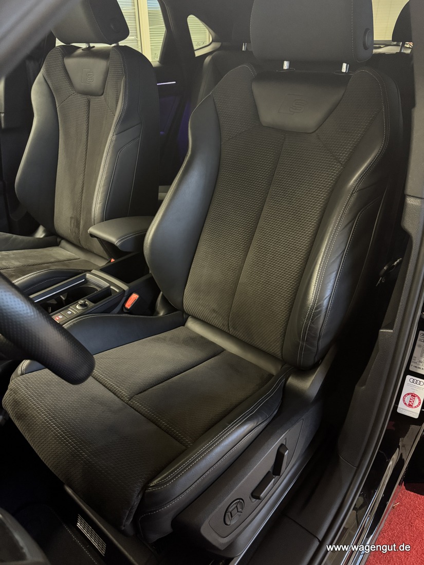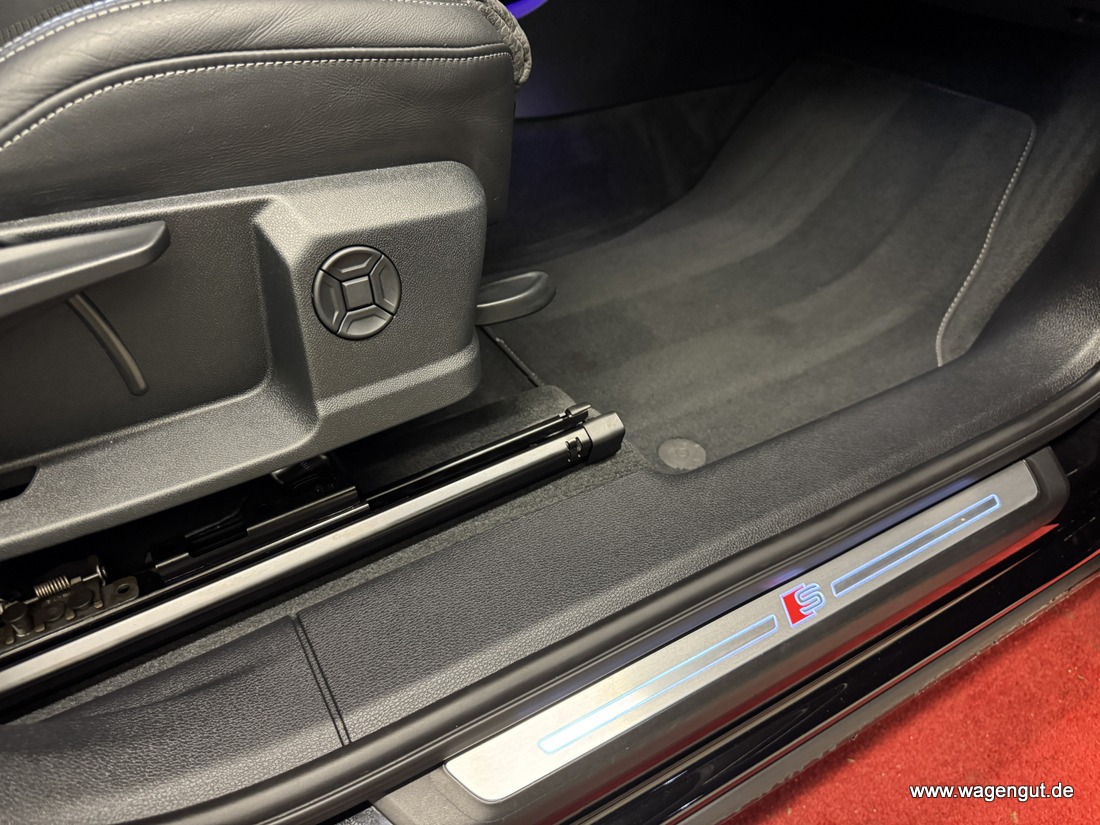 - Audi connect (Notruf- und Assistance-System), Audi connect (Remote / Control), Audi connect plus (Internetbasierende Dienste), Außenspiegel elektr. verstell-, heiz- und anklappbar, Bluetooth-Freisprecheinrichtung mit Spracherkennung (Audi Phone Box), Fahrassistenz-System: Anfahr-Assistent (hold assist), Gepäckraumklappe elektr. betätigt (öffnen + schliessen), Innenausstattung: Aluminium-Optik, Innenausstattung: Interieurelemente in Alcantara / Mikrofaser Dinamica, Stahl-Grau, Innenspiegel mit Abblendautomatik, Interieur-Paket S line, Kombiinstrument digital (virtual cockpit plus), Komfort-Klimaautomatik 3-Zonen, Kontur / Ambientebeleuchtungs-Paket (plus), Lendenwirbelstützen vorn, elektr. verstellbar, Lenkrad (Sport/Leder - 3-Speichen, unten abgeflacht) mit Multifunktion und Schaltfunktion, LM-Felgen 7x19 (5-Arm-Dynamik-Design, für Winterbereifung), LM-Felgen 8,5x19 (5-Arm, Trapez-Speichen-Design, Titanoptik matt), Matrix-LED-Scheinwerfer, Metallic-Lackierung, Multi-Media-Interface MMI Navigation Plus, Optik-Paket schwarz, Radioempfang digital (DAB), Rückfahrkamera, Sitz vorn links elektr. verstellbar, Sitzheizung vorn, Sound-System Bang & Olufsen, Stoßfänger Sport-Design (S-line, in Wagenfarbe), Verglasung hinten abgedunkelt (Privacyverglasung)