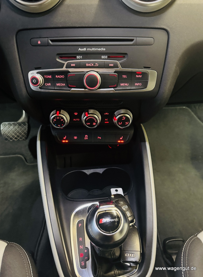 - Airbag Beifahrerseite abschaltbar, Audi music interface, Außenoptik Audi exclusive schwarz, Außenspiegel Dachbogenfarbe Audi exclusive, Außenspiegel elektr. verstell-, heiz- und anklappbar, Dachbogen Kontrastfarbe, Dachhimmel Stoff, schwarz, Dachkantenspoiler S-line, Dynamik-Fahrwerk, Einparkhilfe vorn und hinten, optisch (APS Plus), Exterieur-Paket S line, Fahrassistenz-System: Fernlichtassistent, Frontscheibe mit Bandfilter oben, Gepäckraum-Paket, Innenausstattung: Ausströmer Hochglanz, Innenausstattung: farbig - erweiterte Ausstattung mono.pur, Innenlicht-Paket LED, Innenspiegel mit Abblendautomatik, Klimaautomatik, LM-Felgen 7,5x17 (5-Arm, Dekorelement andersfarbig), Multi-Media-Interface MMI Navigation Plus, Panorama-Ausstelldach elektrisch, Perleffekt-Lackierung, Sitzheizung vorn, Sound-System BOSE, Verglasung hinten abgedunkelt (Privacyverglasung), Vorrüstung Diebstahltracking-Anlage / Ortungsassistent (Vehicle-Tracking-System, VTS), Xenon-Scheinwerfer Plus (Abblend- und Fernlicht)