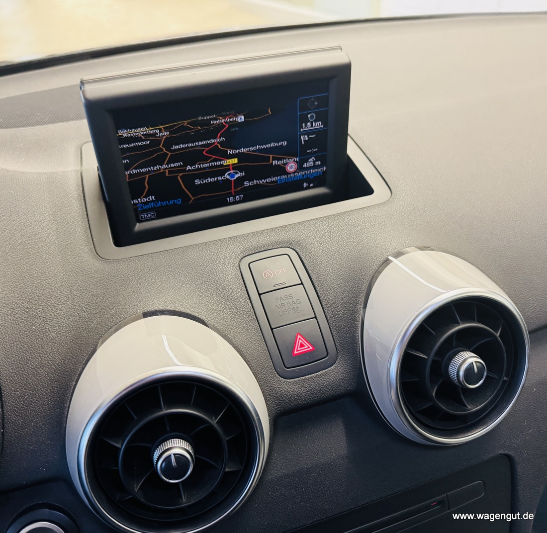 - Dieser gepflegte Audi A1 Limousine aus dem Jahr 2010 präsentiert sich in elegantem Grau-Metallic und überzeugt durch seine umfangreiche Ausstattung. Der 122 PS starke Benziner mit 1390 ccm Hubraum und 4 Zylindern bietet dank Frontantrieb und Automatikgetriebe ein angenehmes Fahrerlebnis. Die Limousine verfügt über ein Panorama-Glasdach, Xenon-Scheinwerfer mit adaptivem Kurvenlicht und LED-Tagfahrlicht. Im Innenraum erwarten Sie Stoffsitze, Sportpaket mit Sportsitzen, Navigationssystem, Bluetooth-Freisprecheinrichtung und Sprachsteuerung. Der Wagen wurde in Deutschland ausgeliefert, hat nur zwei Vorbesitzer