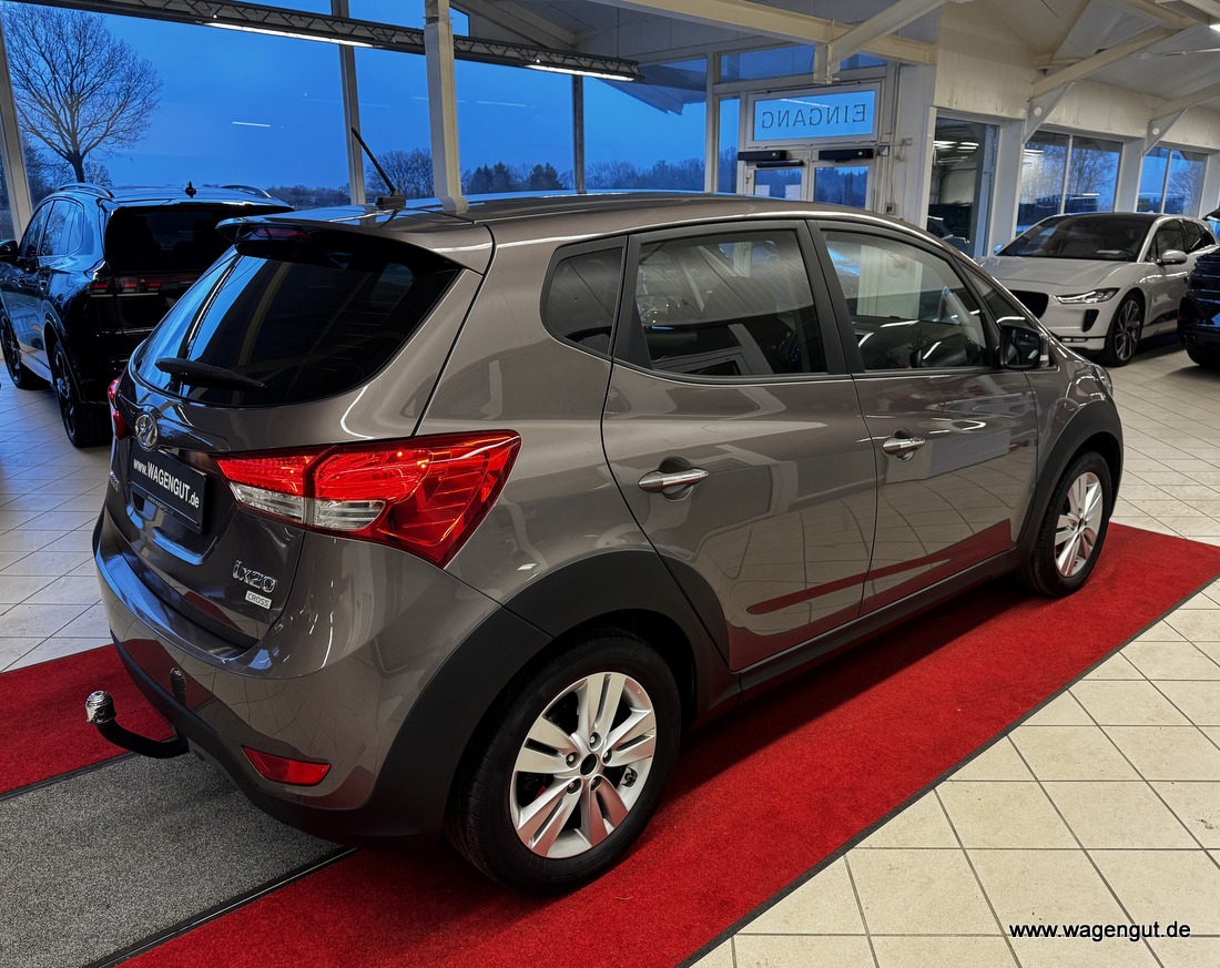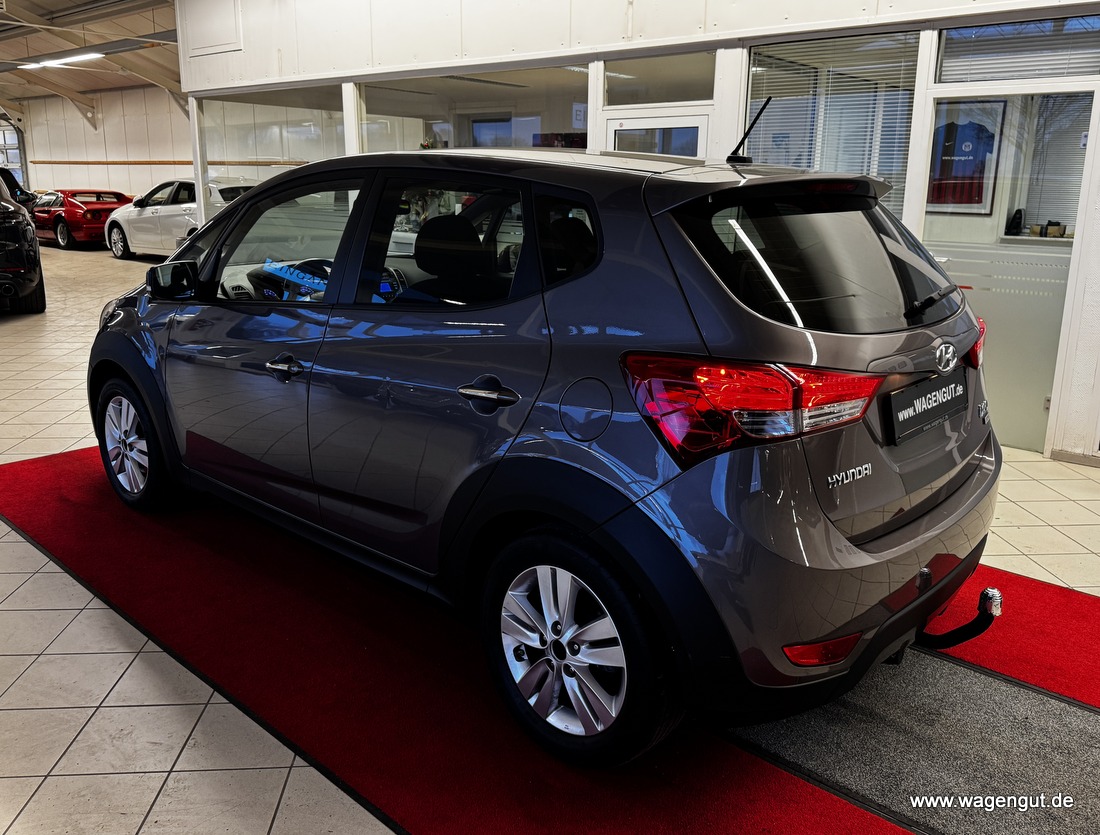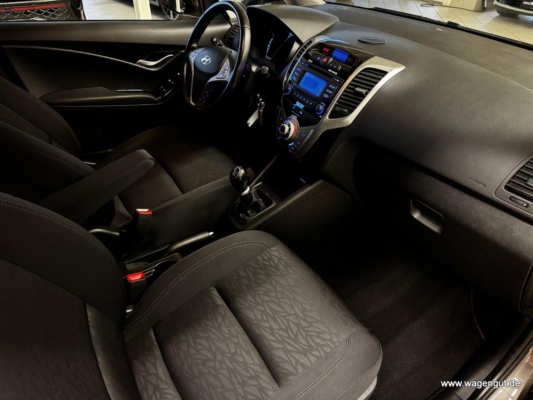 - Dieser gepflegte Hyundai ix20 aus dem Jahr 2015 präsentiert sich in elegantem Braun-Metallic mit schwarzem Stoffinterieur. Mit nur einem Vorbesitzer und lückenloser Servicehistorie bietet dieser Limousine-Crossover zuverlässige Mobilität. Der 1.6-Liter-Benzinmotor mit 125 PS und Frontantrieb sorgt für angenehme Fahrleistungen bei moderatem Verbrauch. Die manuelle Klimaanlage, elektrische Fensterheber und Außenspiegel sowie die Zentralverriegelung mit Alarmanlage erhöhen den Fahrkomfort erheblich. Für Sicherheit sorgen ABS, ESP, Traktionskontrolle und zahlreiche Airbags. Die Ausstattung umfasst Bluetooth-Konnektivität, Freisprecheinrichtung, Multifunktionslenkrad und Tempomat. Praktische Details wie die abnehmbare Anhängerkupplung (gebremst 1300 kg, ungebremst 550 kg), Isofix-Befestigungen und die Rückfahrkamera machen diesen Hyundai zum idealen Familienfahrzeug. Mit grüner Umweltplakette (Euro 5) und neuem Service ist dieser Nichtraucherfahrzeug sofort einsatzbereit.