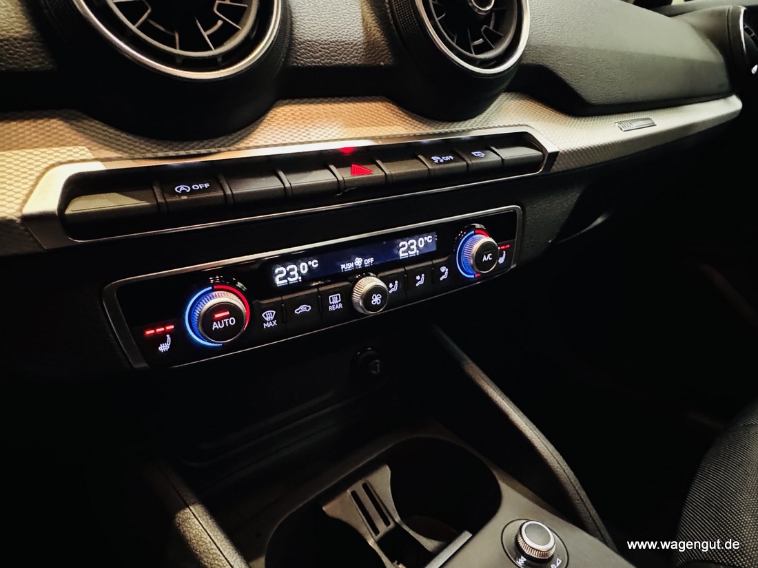 • Entdecken Sie den gepflegten Audi Q2 aus dem Jahr 2020 mit lediglich zwei Vorbesitzern. Dieser kleine SUV in elegantem Schwarz bietet einen effizienten 3-Zylinder Benzinmotor mit 999 ccm und 116 PS, der die Vorderräder antreibt. Das Fahrzeug überzeugt durch seine umfangreiche Ausstattung wie LED-Scheinwerfer, Navigationssystem, 2-Zonen-Klimaautomatik und zahlreiche Fahrerassistenzsysteme. Der Innenraum in Schwarz mit Stoffbezügen bietet Platz für 5 Personen und verfügt über beheizbare Sitze, Lordosenstütze. Mit seinem sparsamen Motor erfüllt der Q2 die Euro-6-Norm und trägt die grüne Umweltplakette. Die manuelle Schaltung ermöglicht ein direktes Fahrerlebnis, während Assistenzsysteme wie Müdigkeitserkennung, Verkehrszeichenerkennung und Berganfahrhilfe für zusätzliche Sicherheit sorgen.