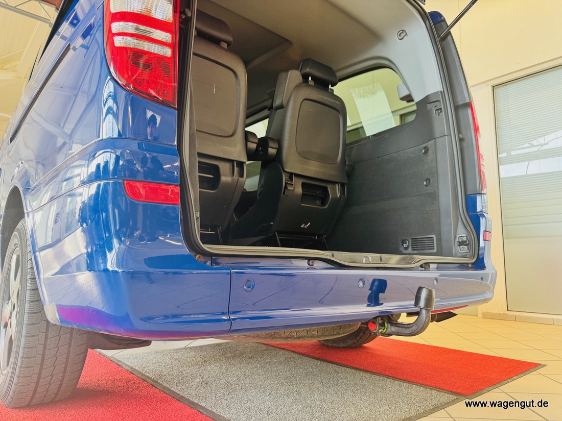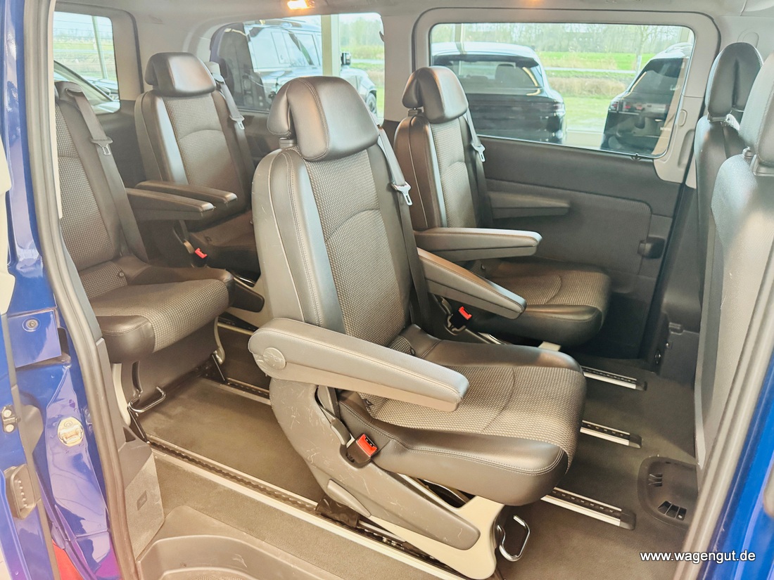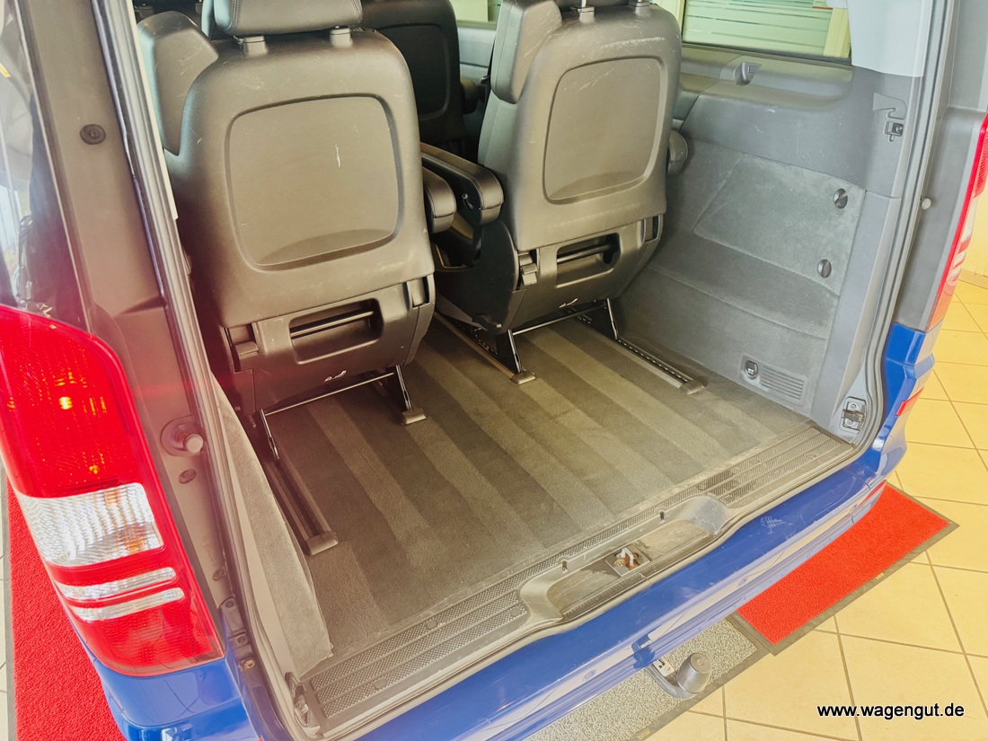 • Adaptives Bremslicht, Airbag Beifahrerseite, Airbag Fahrerseite, Anhängerkupplung: Elektrik für Anhängersteckdose, Anzeige für Waschwasserstand, Außenspiegel asphärisch, beide, Außenspiegel elektr. verstell- und heizbar, beide, Außenspiegel mit integrierter Blinkleuchte, Außentemperaturanzeige, Befestigungsschienen für Dachträger, BlueEfficiency-Paket, Bodenbelag: Teppich im Fahrerraum, Bodenbelag: Teppich im Lade-/Fahrgastraum, Bremsassistent, Cockpit Softtouch, Dachbedieneinheit mit Lesespot Fahrer-/Beifahrerseite, Dachverkleidung, Design- und Ausstattungslinie Trend, Fenster für hintere Türen / Heckklappe mit Wisch-/Waschanlage, Fenster im Lade-/FG-Raum: - elektr. ausstellbar, hinten links/rechts, Fenster im Lade-/FG-Raum: - feststehend, vorn links, Fenster im Lade-/FG-Raum: - feststehend, vorn rechts, Frontscheibe mit Scheibenantenne, Handschuhfach abschließbar, Heckklappe, Innenleuchten im Lade-/FG-Raum: 2 zusätzlich, Innenraumfilter: Pollenfilter, Karosserie/Aufbau: Bus, Karosserie/Aufbau: lang, Kindersicherung, Komfort-Fahrwerk, Lenkrad (Lenksäule mech. verstellbar), Lenkrad mit Multifunktion inkl. Reiserechner, Modellpflege, Motor 2,1 Ltr. - 120 kW CDI KAT, PKW-Zulassung, Radstand 3200 mm, Radvollabdeckung, Reifen 205/65 R16C 103/101 T, Rückspiegel innen, Schadstoffarm nach Abgasnorm Euro 5, Schiebetür Lade-/Fahrgastraum rechts, Sicherheitsgurt-System mit Warnanlage (Fahrer-/Beifahrerseite), Sitzausstattung: Schnellverriegelung für Sitzschienen-System, Sitzbezug / Polsterung: Stoff/Kunstleder Leon, Sitze im Fahrerhaus: Beifahrersitz Komfort, Sitze im Fahrerhaus: Fahrersitz Komfort, Sitze im Lade-/FG-Raum: 1.Reihe, 1 Einzelsitz links, Sitze im Lade-/FG-Raum: 1.Reihe, 1 Einzelsitz rechts, Sitze im Lade-/FG-Raum: 2.Reihe, 1 Einzelsitz links, Sitze im Lade-/FG-Raum: 2.Reihe, 1 Einzelsitz rechts, Sonnenblenden mit Spiegel (beleuchtet), Stahlfelgen 6,5x16, Start/Stop-Anlage Motor, Steckdose (12V-Anschluß) im Lade-/Fahrgastraum, Stoßfänger / Stoßf.-Leiste seitlich + Griff an Heckklappe lackiert, Trend