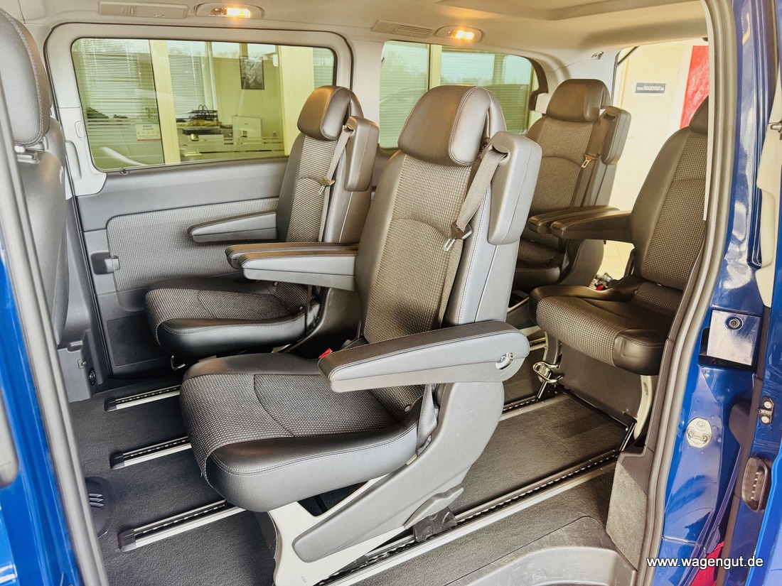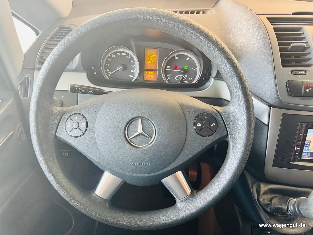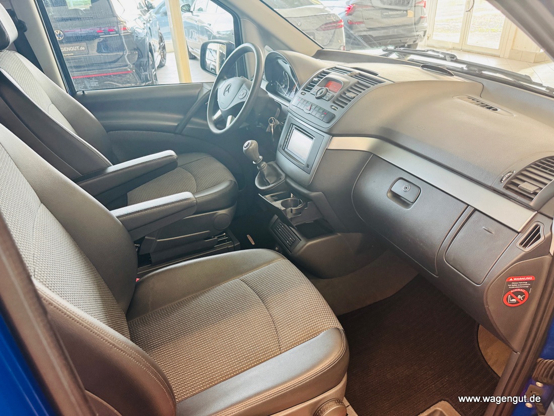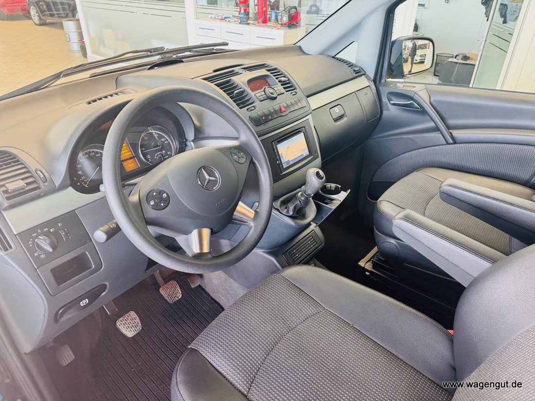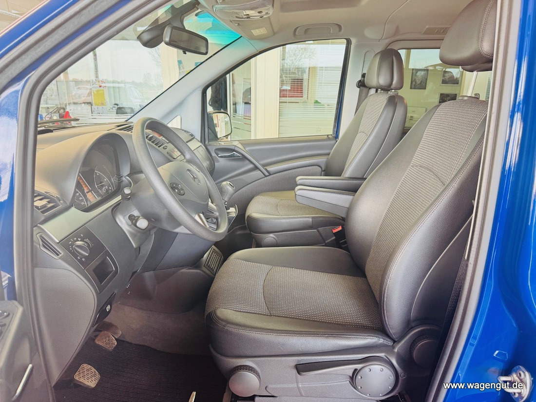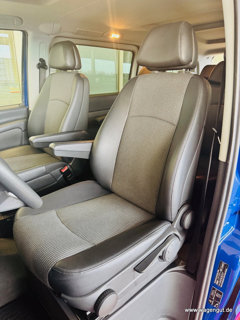 • CD-Box, Klimaautomatik Fond (Tempmatik), Komfort-Klimaautomatik Thermotronik, Mittelkonsole vorn mit 1 DIN-Schacht, Parktronic-System (PTS), Reserverad mit Wagenheber, Schiebetür Lade-/Fahrgastraum links, Sitze im Fahrerhaus: Beifahrersitz heizbar, Sitze im Fahrerhaus: Fahrersitz heizbar, Verglasung hinten abgedunkelt / Schwarzglas, Vlies-Batterie 95 Ah, Wärmeschutzverglasung (Frontscheibe mit Bandfilter oben), Zuheizer